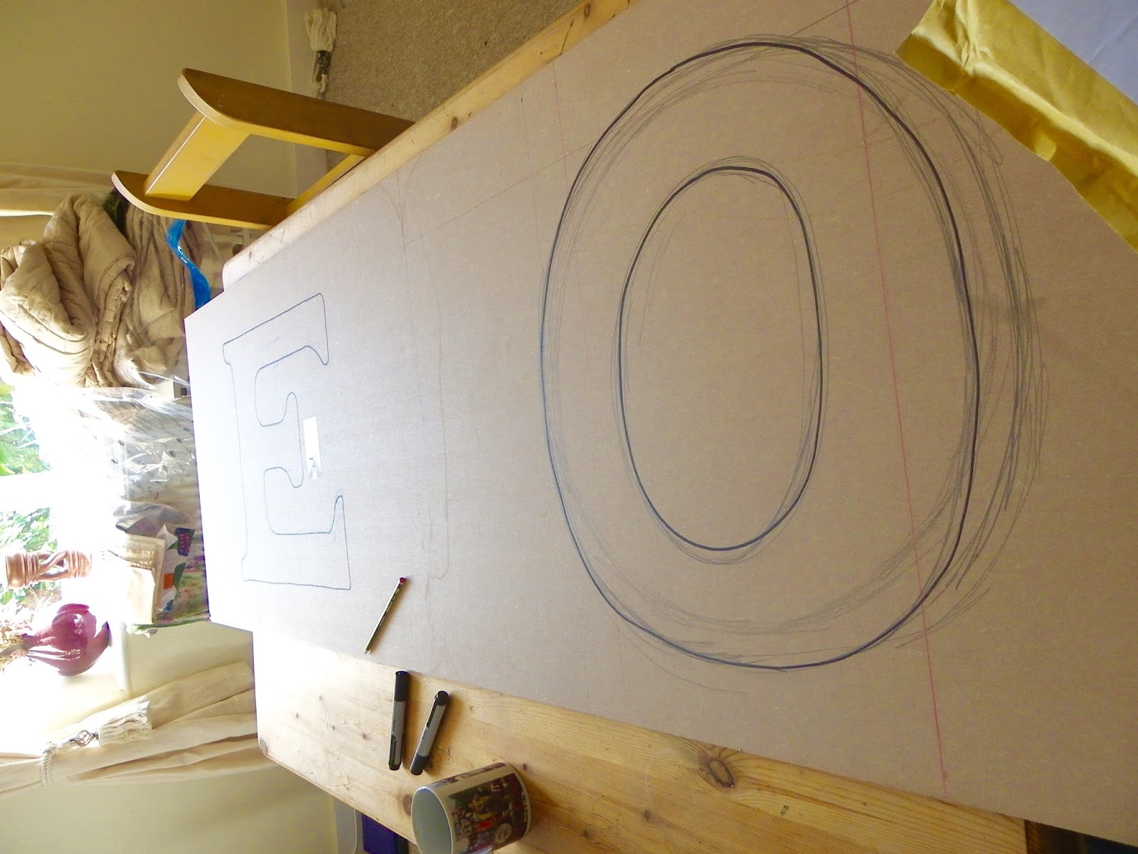 For the headboards, I wanted to make backlit monograms. I purchased a 6ft piece of MDF, And drew on their initials. Stephen cut them out with a jigsaw, and did an exceptional job! I was really nervous handing over a job - I'm a bit of a control freak, and I'm not quite sure how I would of handled it if he had messed it up!